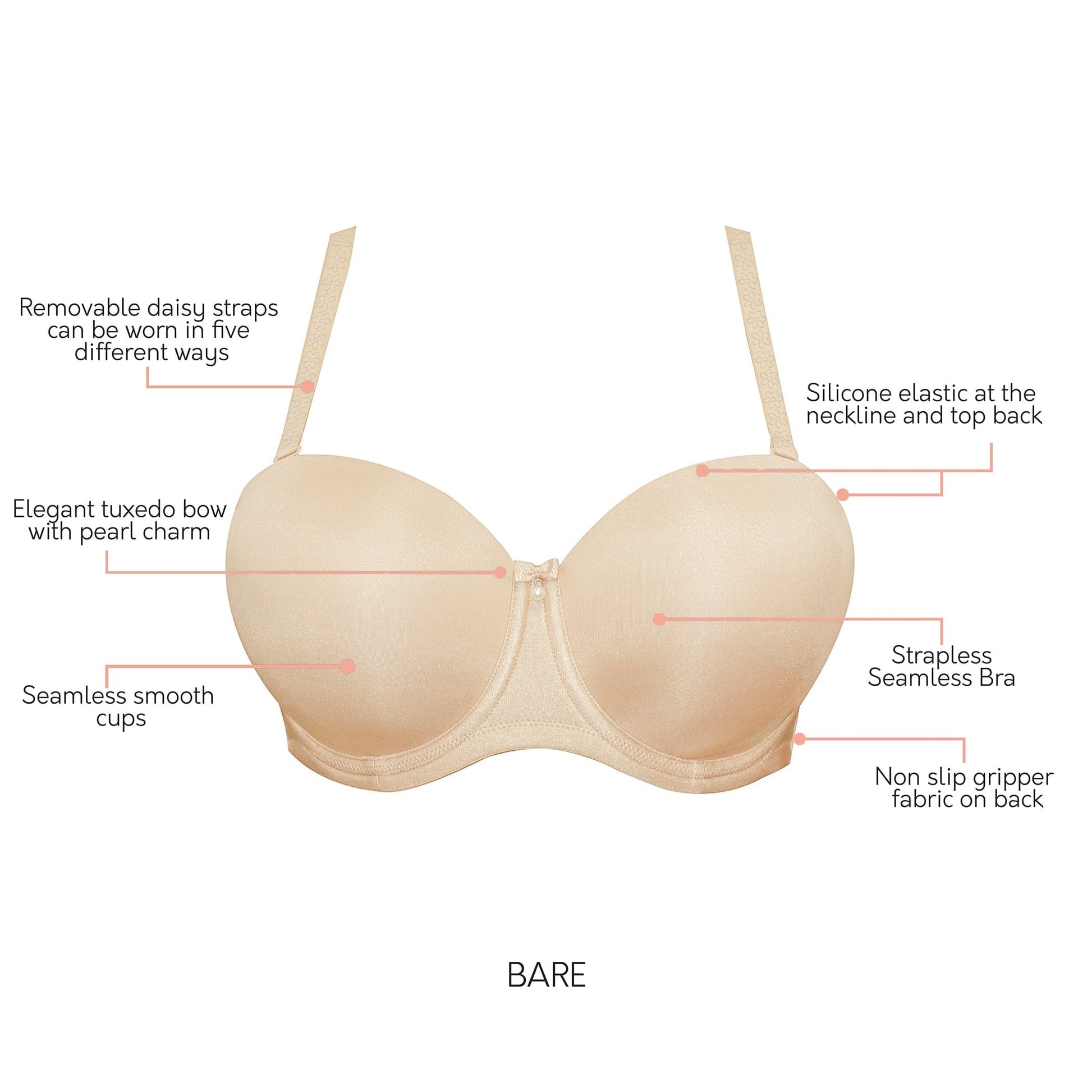 Sleek, seamless styling to make this the ultimate strapless perfect for any occasion. Detachable, convertible daisy embossed straps, make it versatile enough to style it five different ways.